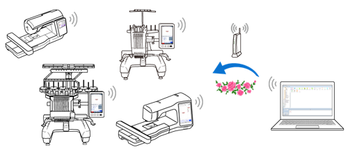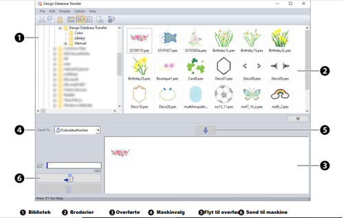 Enkelt biblioteksprogram där du kan se dina broderier och överföra dem trådlöst till Brother broderimaskiner (NV880W, NV2700W, XE1, XJ1, XP1, PR680W och PR1055X eller till USB -minne.